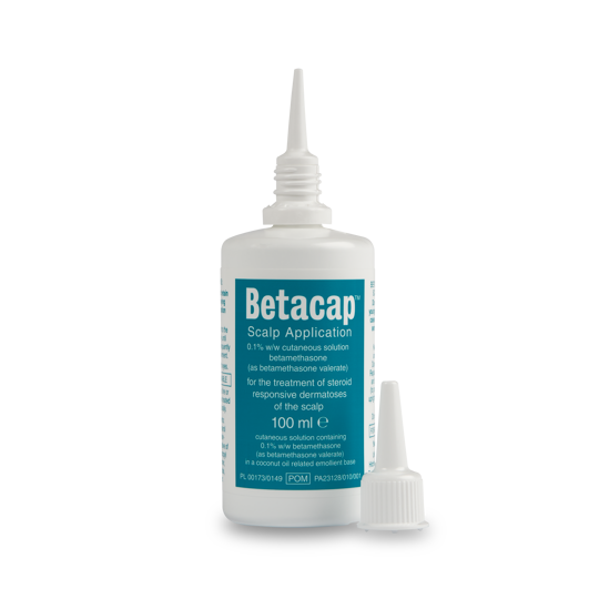 Steroid application containing betamethasone, a potent steroid, which is available only on prescription for the treatment of dermatoses of the scalp, such as psoriasis and seborrhoeic dermatitis. Available only on prescription.